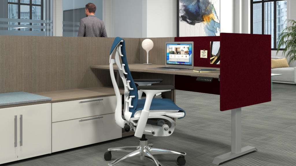 The panels absorb sound, reduce reverberation, and interrupt direct sound paths between workstations. They’re lightweight, easy to reconfigure, and available in two profiles: one with clean architectural lines, and a curved-edge version for spaces that call for a softer look. Both come in a range of colors that work with most commercial interiors, so acoustic performance doesn’t come at the expense of design.